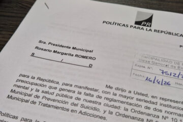 Suicidios: reclaman reglamentar ordenanza adminabril 16, 2026 El partido Políticas para la República (PR) presentó una petición formal a la intendenta de Paraná, Rosario Romero, para que el Ej... Paraná0 Comentarios 0
