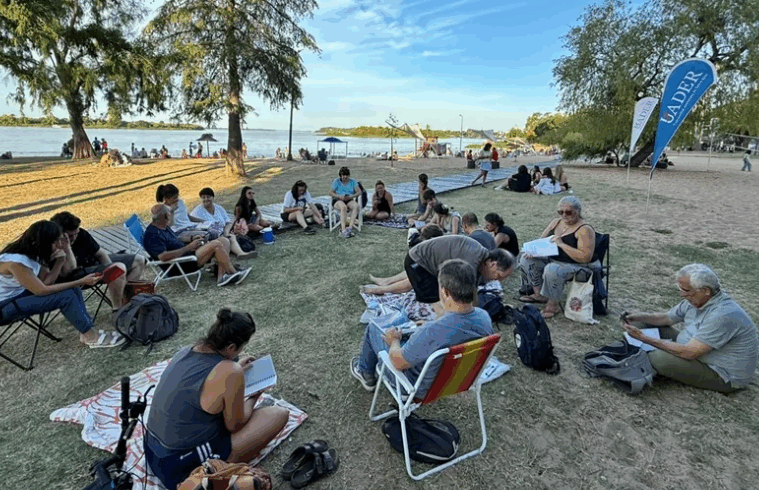 En un espacio abierto frente al río, en el Balneario Municipal de Paraná, se desarrolla el Taller de Escritura Literaria “El vuelo de las chicharras”. La propuesta es impulsada por la Universidad Autónoma de Entre Ríos (Uader), a través del Departamento Cultura, coordinada por la escritora y profesora Belén Zavallo.