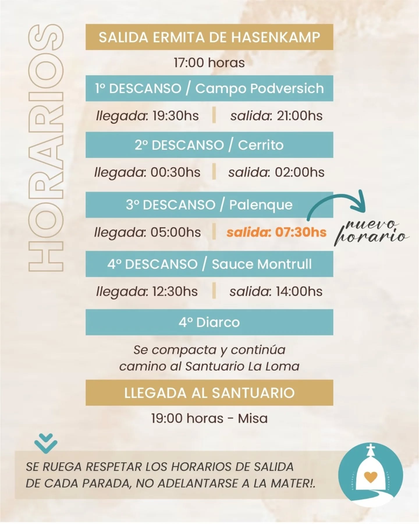 Este viernes, puntualmente a las 17, partirá desde Hasenkamp la 43ª edición de las Peregrinación de los Pueblos, una caminata que durante más de 24 horas une el punto de partida con el Santuario de La Loma, en Paraná. La llegada está prevista para el sábado 18, cerca de las 19.