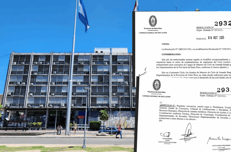A través de la resolución N° 2.932, del 6 de este mes, Educación extendió «la vigencia de la resolucion N° 1882/24 CGE y su modificatoria resolucion N° ‘3395/24 CGE para garantizar la cobertura de cargos de maestro de ciclo de jornada simple para todos los departamentos de la Provincia de Entre Rios por el Ciclo Lectivo 2025».