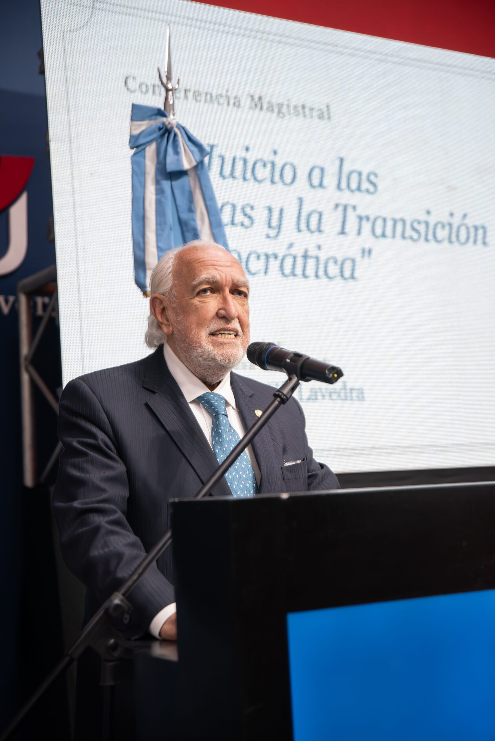 Antes de comenzar su conferencia magistral, Gil Lavedra agradeció “tantos elogios que han puesto a prueba mi pudor”. Dijo que la distinción es “un altísimo honor que agradezco sinceramente”.