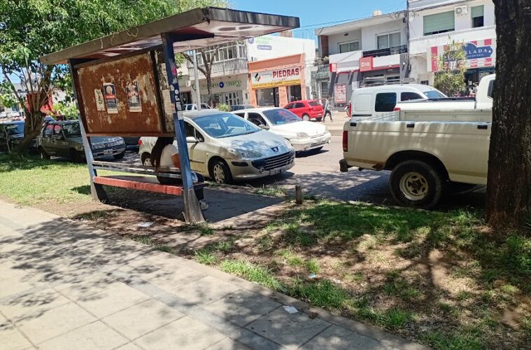 Las garitas donde la gente espera -y desespera- al aguardo de que pase el colectivo son lugares de disputa. Los automovilistas dejan sus vehículos violando todas las normas básicas de la calle. No se respeta el carril exclusivo, ni la línea amarilla en el cordón ni los espacios señalizados para el transporte público. La imagen muestra a una chica sentada en una garita cuyo espacio ha sido ocupado por vehículos estacionados.