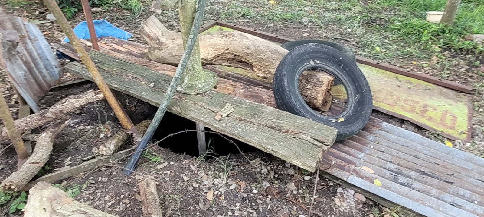 No hay nada acá. Nadie. Lo único que se escucha es silencio, un silencio que corta la respiración, que detiene el tiempo, que produce desasosiego. Hay un pozo, arriba de ese pozo una bomba para extraer agua pero que no extrae agua, troncos dispersos, una chapa larguísima, algunas cubiertas dejadas con descuido, pero ni el pozo, ni la bomba, ni los restos de maderas, ni la chapa larguísima sostienen vida en este lugar.