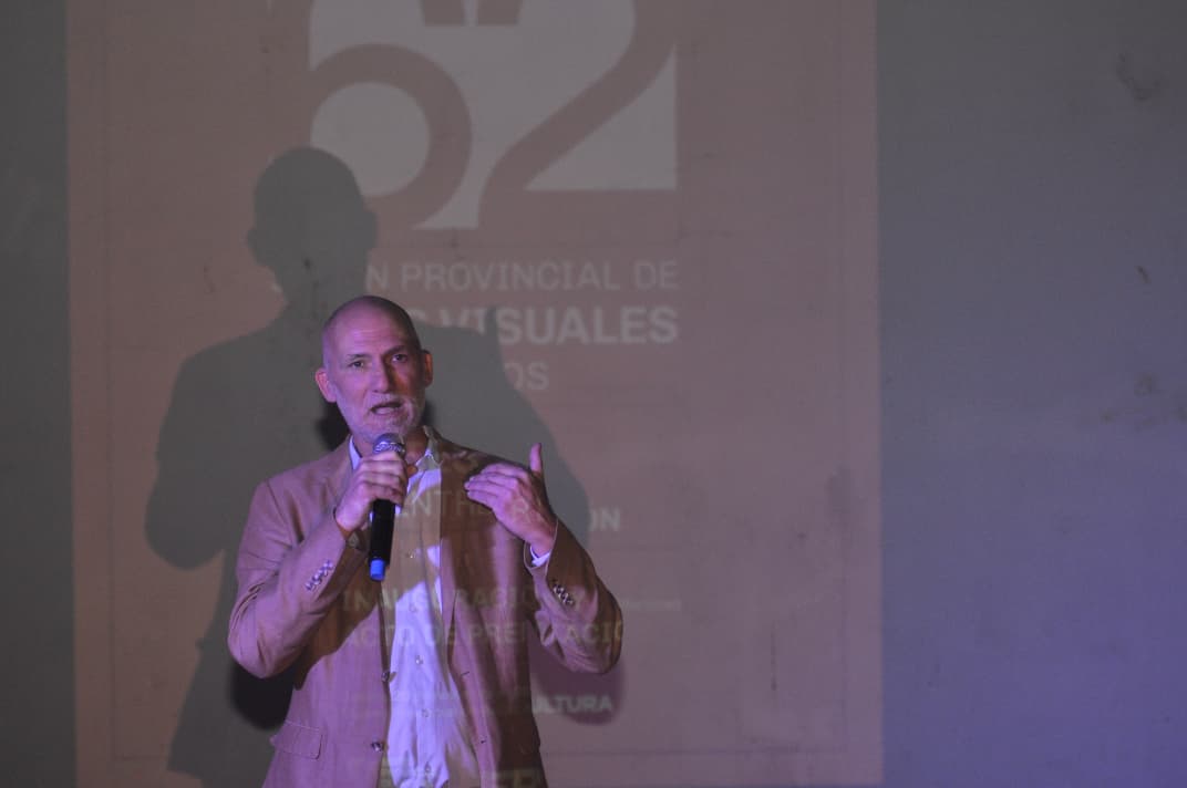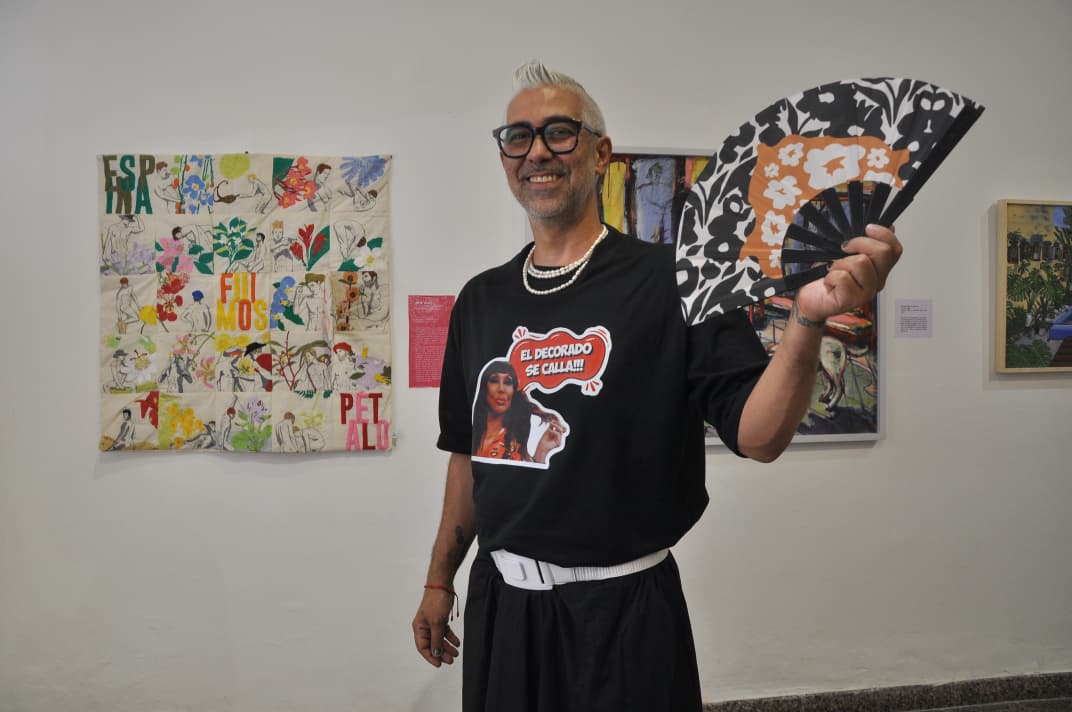 «El decorado se calla», la icónica frase de Moria Casán, estaba inscripta en la remera negra que lució este jueves por la noche Fernando Kosiak en el acto que se desarrolló en el Museo de Bellas Artes Pedro E. Martínez donde ocurrió la inauguración de la exposición y entrega de distinciones en el marco del 62º Salón de Artes Visuales de Entre Ríos. Pareció una respuesta a las voces que se levantaron contra la propuesta con la que ganó Kosiak y que fue una reversión de una obra que había presentado en 2024.