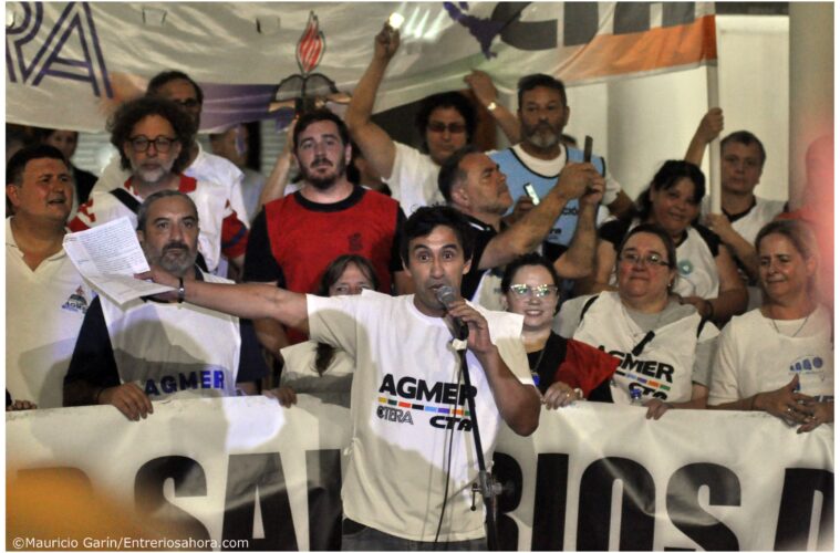El secretario general de la Asociación Gremial del Magisterio de Entre Ríos (Agmer), Abel Antivero, reclamó al Gobierno una convocatoria “inmediata” a paritarias con una propuesta salarial “en serio”. Fue en el marco de la multitudinaria marcha de antorchas de este último viernes, que llegó a la explanada de Casa de Gobierno ya bien entrada la noche.