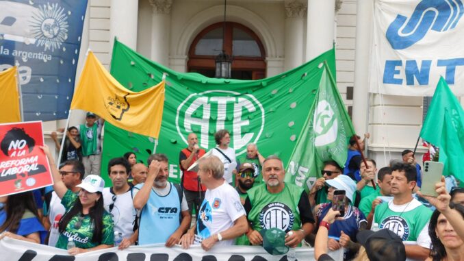 Esta jornada se realiza en el marco del tratamiento del «proyecto de ley antiobrero» en la Cámara de Senadores, luego de haber sido modificada la semana pasada en Diputados.