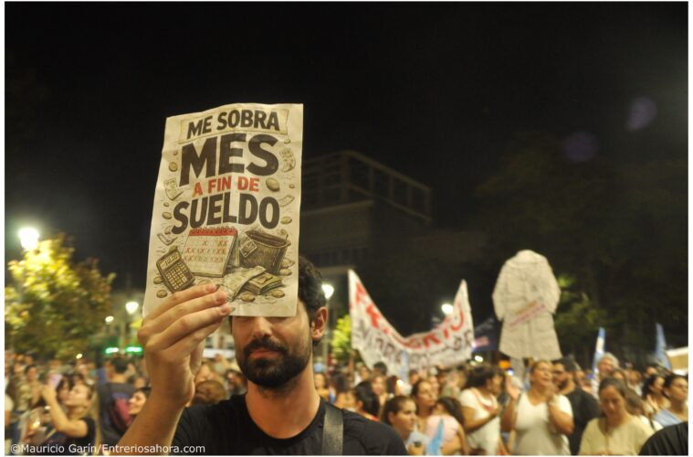 La noche paranaense se iluminó con las antorchas docentes, y también escuchó las expresiones de bronca: muchos maestros suman un trabajo extra para llegar a fin de mes, tienen emprendimientos o suman más horas de las recomendables frente a alumnos. «La vocación sobra. Lo que nos falta es un sueldo digno», se leía en una de las pancartas.