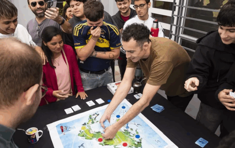 En el marco de la Agenda M, la Universidad Autónoma de Entre Ríos (Uader) convocó a sus estudiantes y a la comunidad a una tarde compartida en torno al juego “Malvinas, el juego”, desarrollado por la editorial entrerriana de juegos de mesa El Equipo Azul. Para quienes se acercaron al Campus, fue la oportunidad de compartir, jugar y aprender sobre las islas, sobre el conflicto bélico y más allá del mismo. De esta manera, fue posible un acercamiento más enriquecedor y profundo al reclamo de soberanía de la Argentina sobre ese territorio. En torno a una mesa grande, por turnos, los equipos anotados fueron disputando, a través de las fichas de colores y sobre un tablero que es el mapa de Malvinas, recursos naturales, ciudades o puntos de interés. Avances, retrocesos y turnos perdidos condicionaron la posesión de ese territorio. Iván Taylor, de El Equipo Azul, que cursó una diplomatura sobre el tema dictada por la UBA y la Red Argentina de Profesionales para la Política Exterior, tuvo a su cargo la guía en el juego. No sólo se trató de enseñar las reglas para mover las fichas dentro del tablero, fue más bien un guía en un intercambio con los participantes acerca de Malvinas. Una veintena de estudiantes se aglomeraban en torno al tablero; el resto de los presentes esperaba su turno para jugar escuchando música y compartiendo en rondas de mate. Elementos de distinta naturaleza constituyen en “Malvinas, el juego” una instrucción para avanzar con las piezas. Las cartas pueden representar, por ejemplo, recursos como el crustáceo krill, o normativas de los organismos internacionales acerca del conflicto, o la vida de algunos de los héroes, o anécdotas de cotidianeidad de 1982 como el rol que jugó Tom, un perro convertido en mascota. El juego fue también una aproximación acerca de lo que conocemos sobre Malvinas y también una propuesta para facilitar el acercamiento a un territorio desbordante de sentidos para nuestro país.