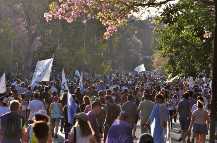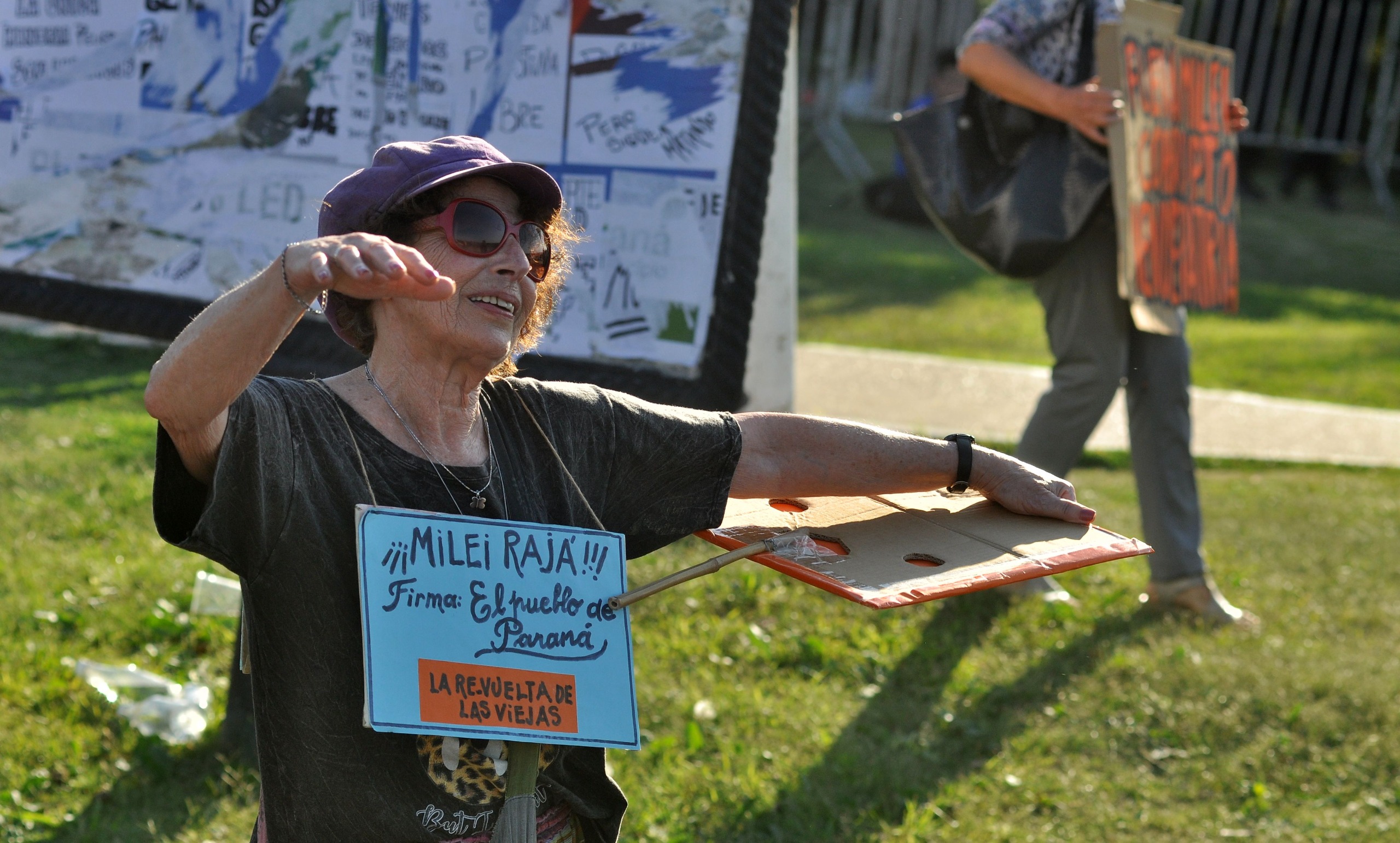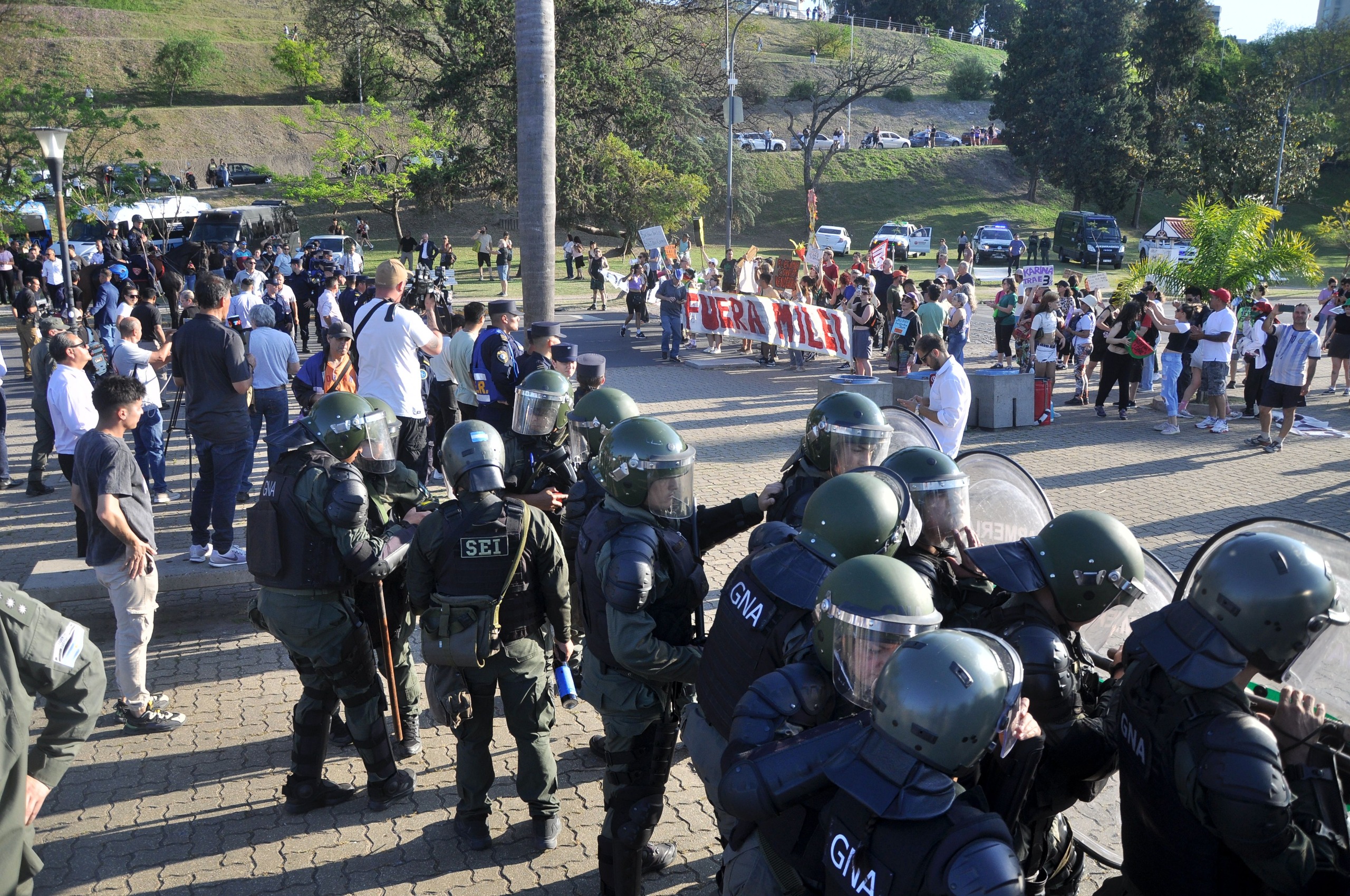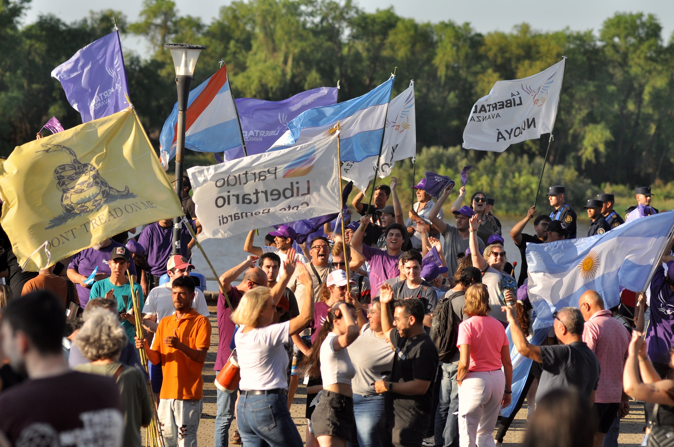 El reportero Mauricio Garin retrató el color, los personajes y la presencia de los militantes libertarios y los de Izquierda que repudiaron la presencia del presidente de la Nación en Paraná.