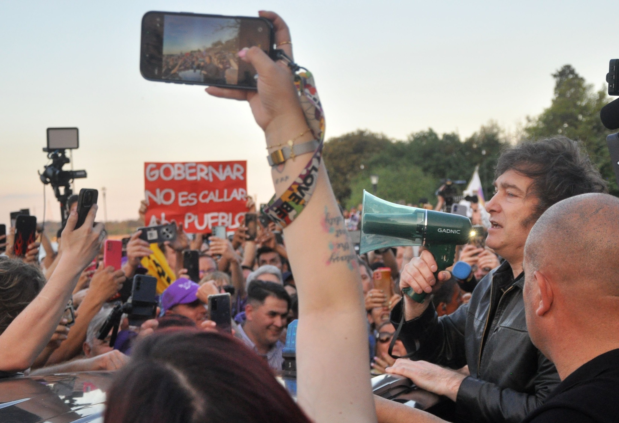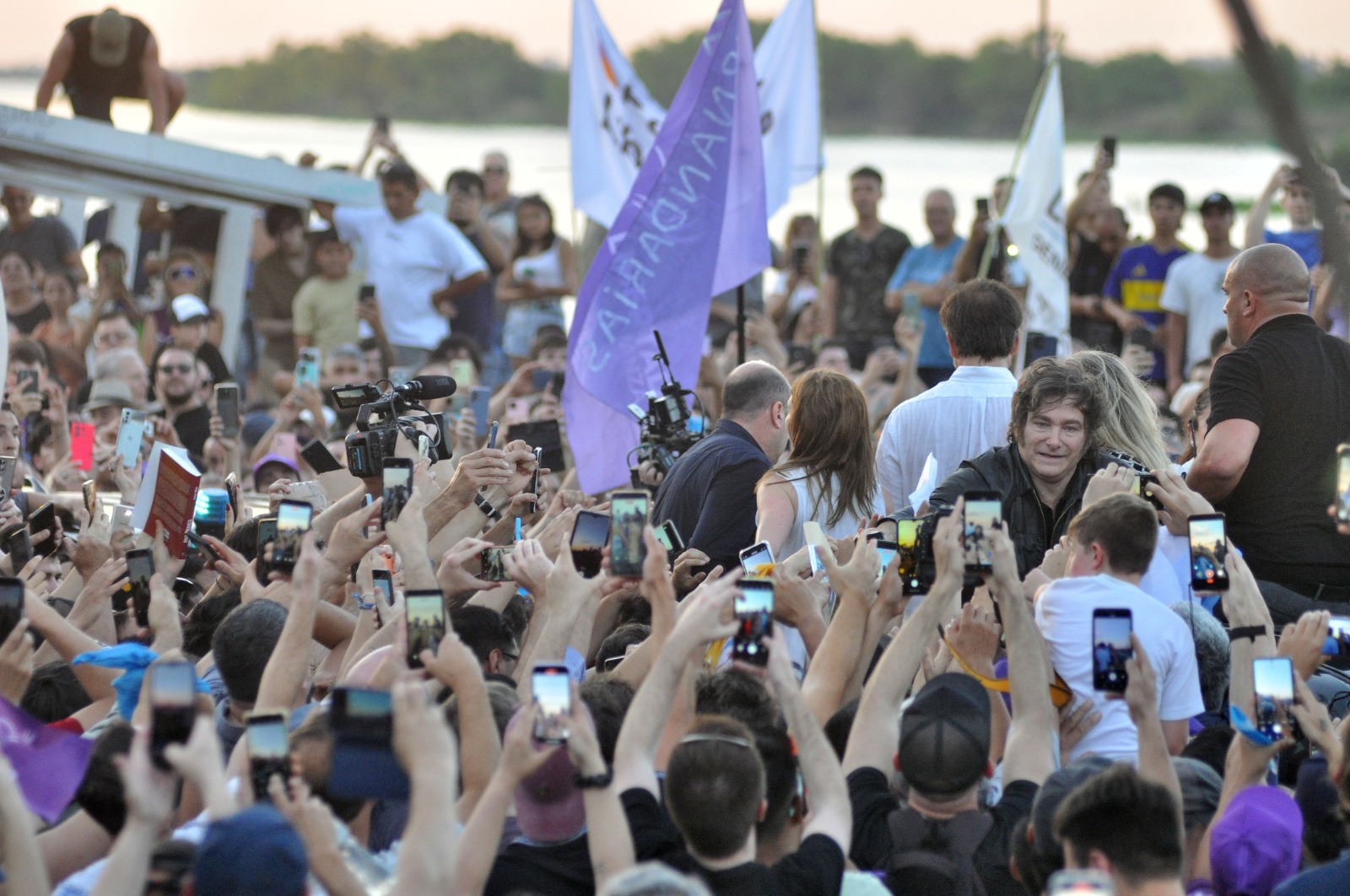 Luego de unas horas de descaso, salió a recorrer, tal lo previsto, la Costanera, en la zona de Acuerdo de San Nicolás y Laurencena. Allí no hubo acto. Milei les habló a los militantes que se congregaron -unos 3.000 según cálculos de la Policía- subido a una camioneta, y a través de un megáfono.