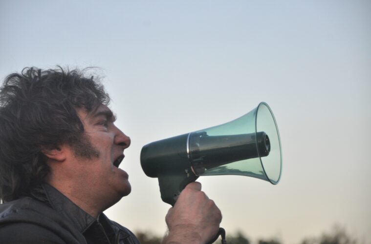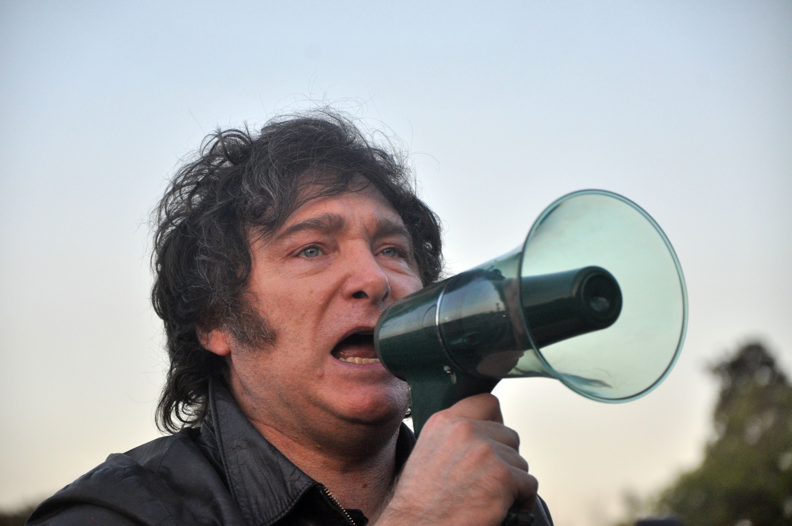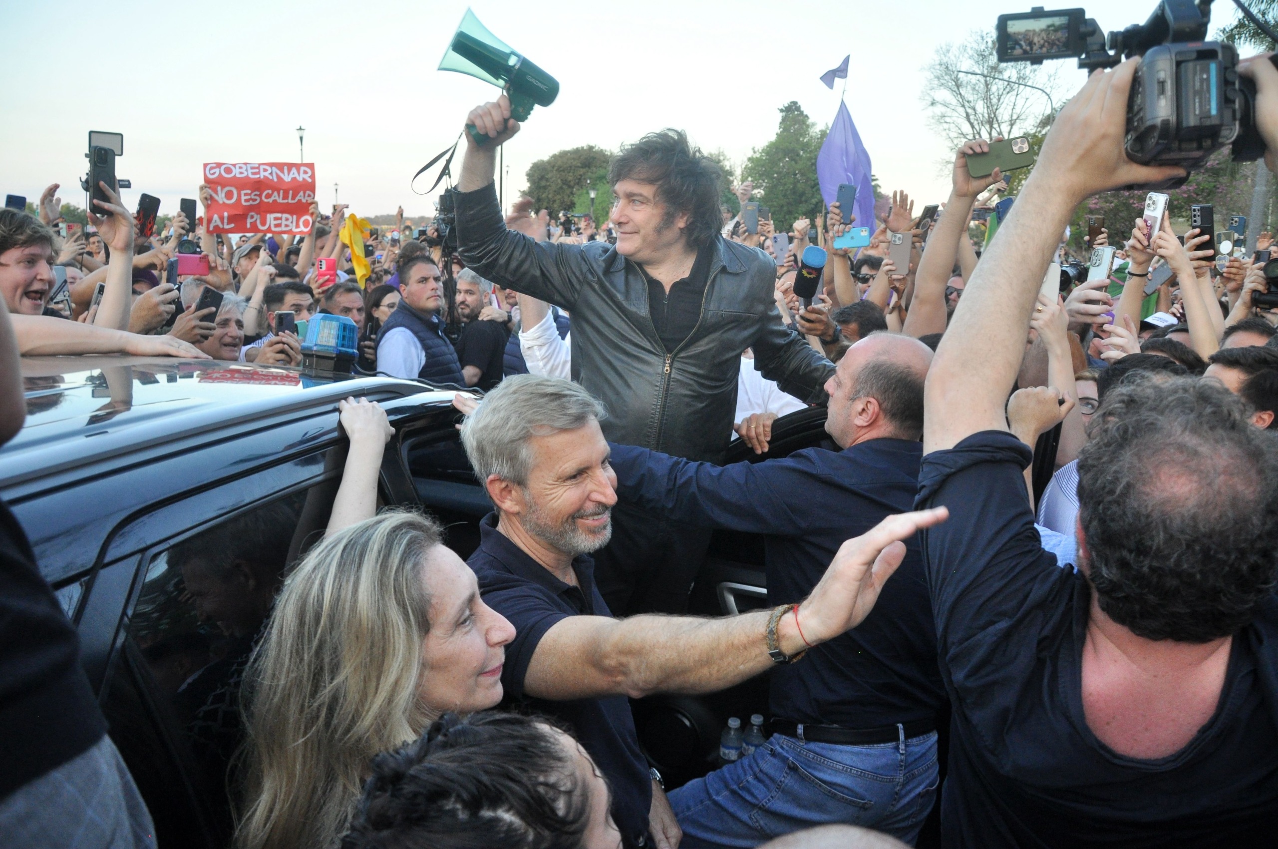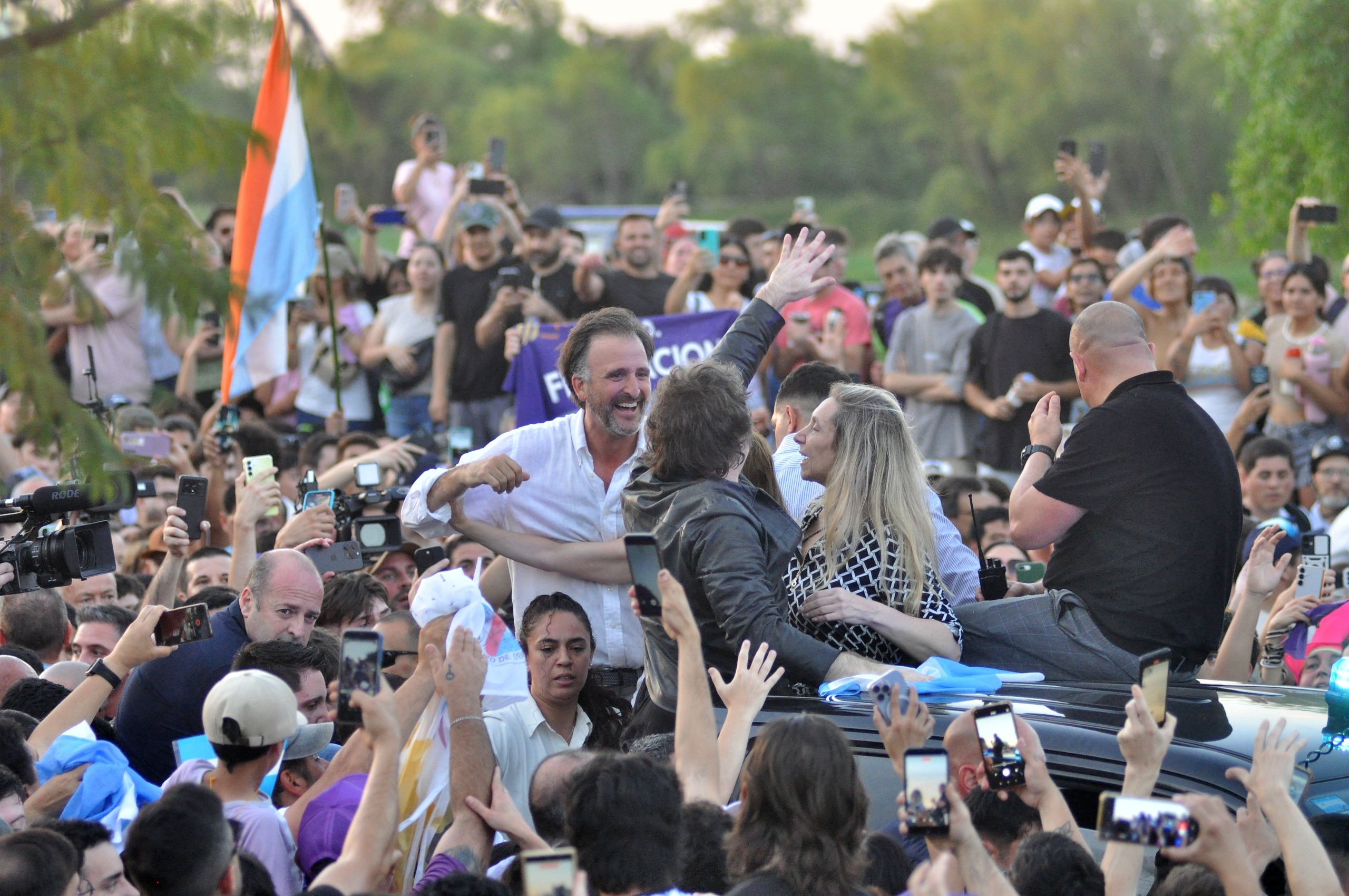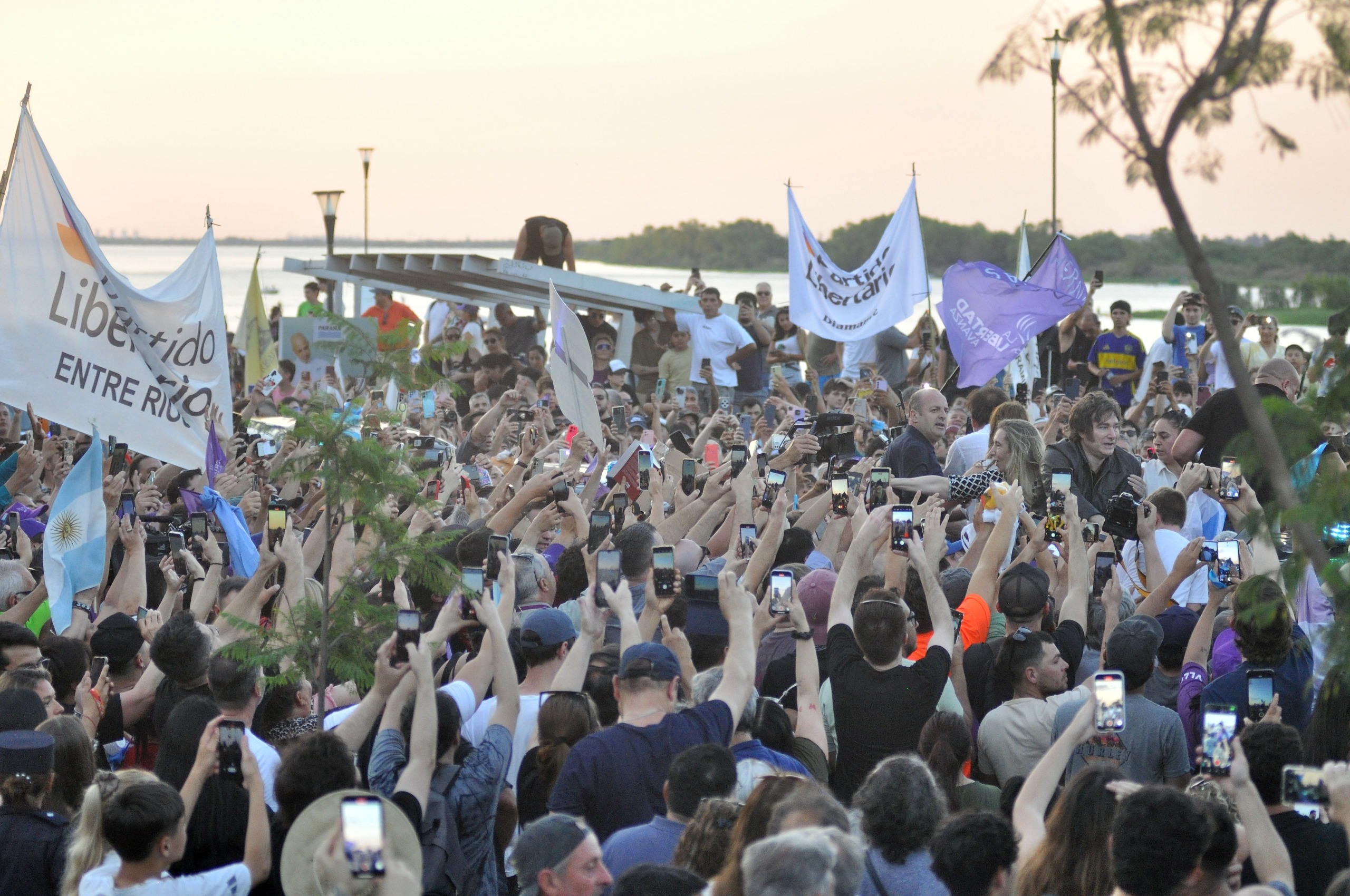 Megáfono en mano, a la vera del río Paraná, frente a la amplia concurrencia, Milei expresó: