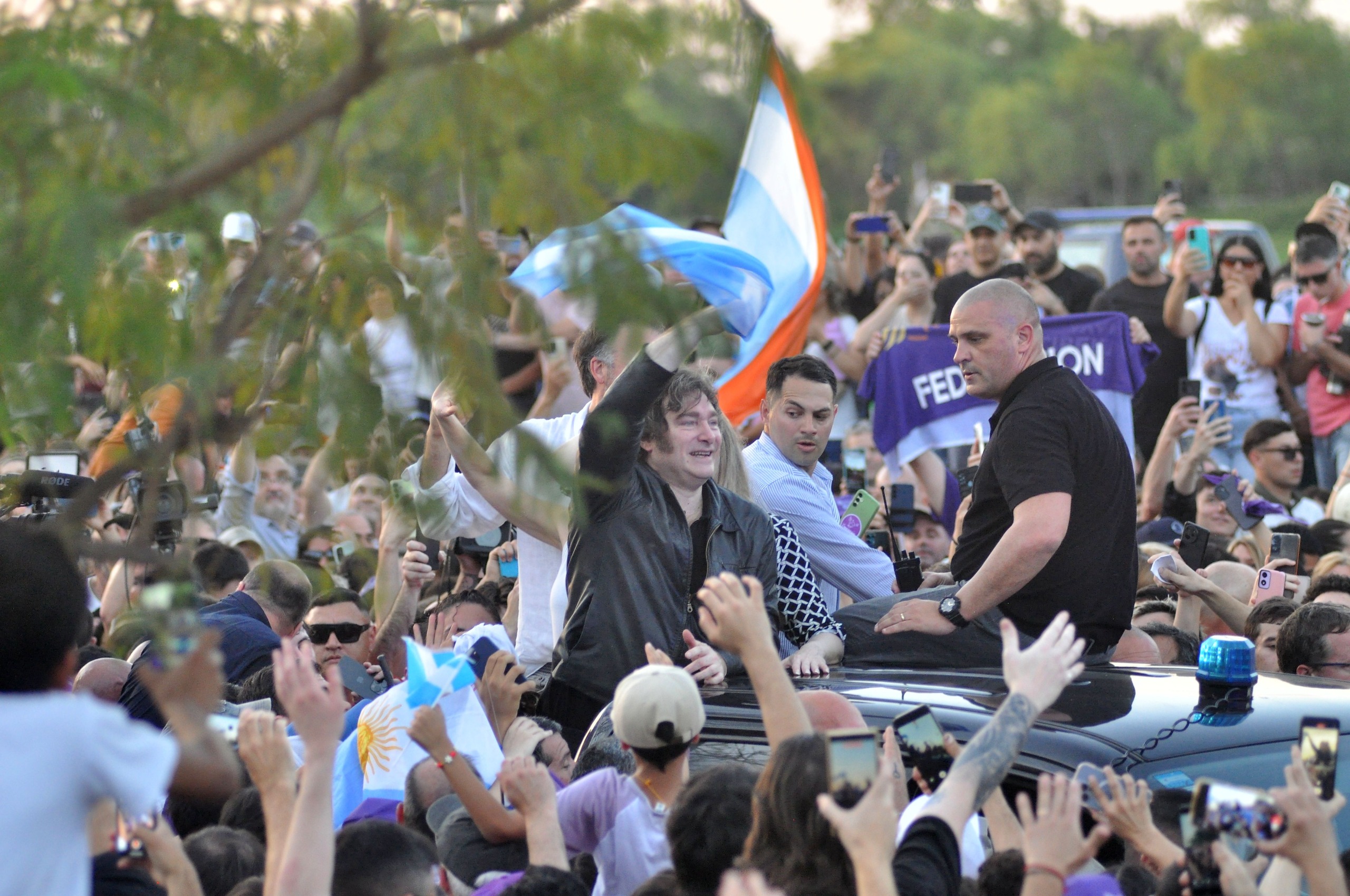 Arriba de una camioneta junto al gobernador Rogelio Frigerio, Milei agregó: “Estamos en un momento bisagra de la Argentina. Luego de semejante debacle y decadencia decidimos abrazar las ideas de la libertad en 2023. En ese sentido hemos bajado la inflación del 300% al 30%, hemos sacado de la pobreza a 12 millones de argentinos”.