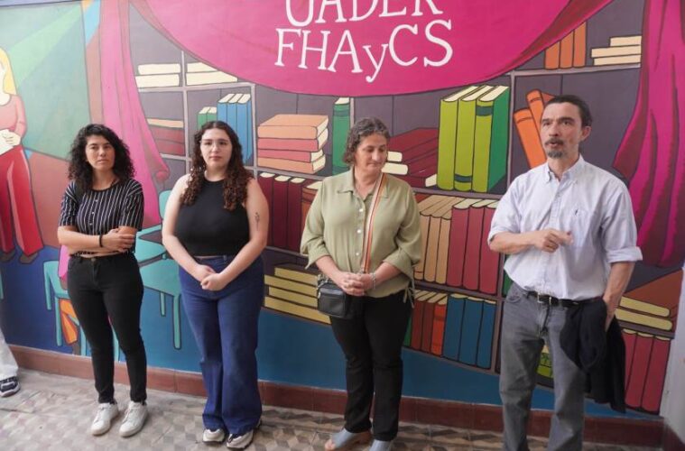 Se inauguró el mural «Homenaje a la inspiración, formación y logro» en la Facultad de Humanidades de la Universidad Autónoma de Entre Ríos (Uader), una obra colectiva que plasma el trayecto vital y académico de estudiantes universitarios. La inauguración tuvo lugar en el anexo de la casa de estudios, ubicado en Urquiza 760, y contó con la presencia del decano Daniel Richar, integrantes del equipo de gestión, del consejo directivo, graduados, docentes, personal administrativo y estudiantes. El mural fue realizado por la Cátedra Pintura Monumental en Espacios Públicos de la Tecnicatura en Pintura, bajo la coordinación del profesor Lisandro Pierotti, y con la participación de los estudiantes Priscila Bruschi, Lourdes Collaud, Sandra González, Giulian Leiva, Julieta Londero, Delia Ojeda, Marisa Scipioni y Camila Villalba. La obra se concibió con el propósito de representar el recorrido de las y los estudiantes por la vida universitaria y servir como escenario simbólico para las fotografías de egreso, uniendo arte, memoria y pertenencia institucional. El decano destacó la relevancia del mural como expresión de los valores que sustentan a la universidad pública. «Es un día de celebración donde se pone de manifiesto el trabajo cotidiano. Este último tiempo hemos trabajado para  poner en valor el  momento de la recepción del título universitario ya que se trata de un momento simbólicamente muy fuerte. Creemos que  la imagen de este mural representa el recorrido que ustedes han hecho: los esfuerzos, las vivencias, las alegrías y también las dificultades, todo lo que implica transitar la universidad acompañado de otros», expresó Richar.