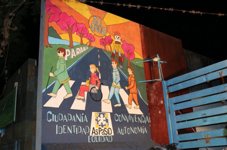 En el marco de los festejos por un nuevo aniversario de la Asociación Paranaense de Sindrome de Down y otras Discapacidades (Aspasid), se inauguró un mural alusivo, realizado por estudiantes y docentes de la cátedra Pintura monumental en espacios públicos, perteneciente al tercer año de la Tecnicatura en Pintura de la Escuela de Artes Visuales Profesor Roberto López Carnelli de la Facultad de Humanidades de la Universidad Autónoma de Entre Ríos (Uader).