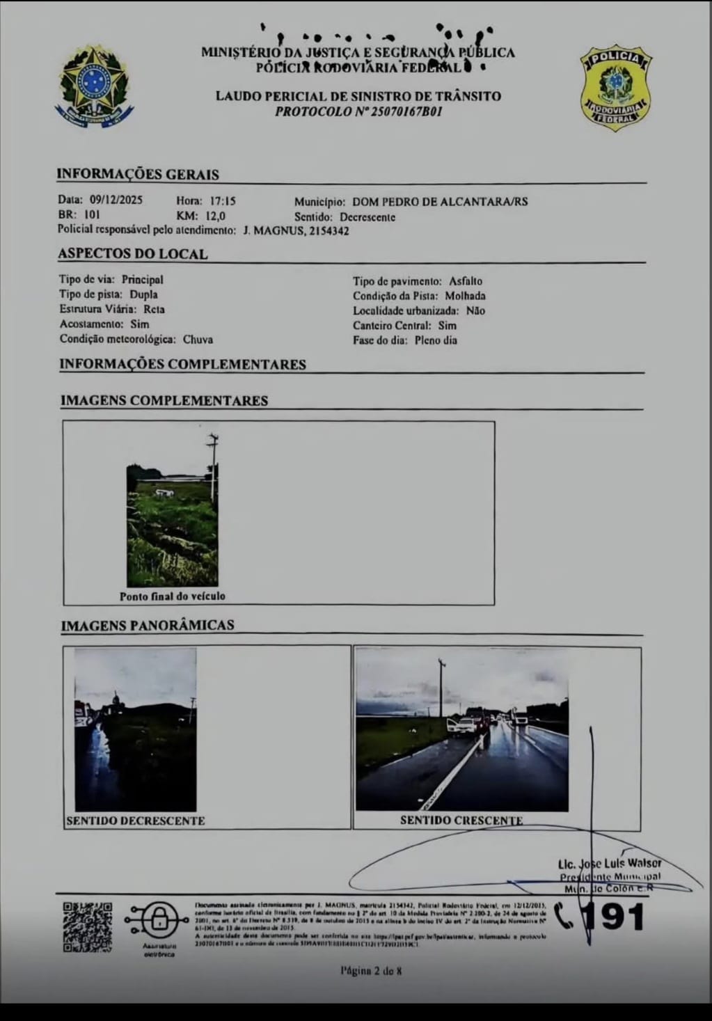 Walser agregó a su informe a los concejales “una copia de las actuaciones policiales que fueron realizadas como consecuencia del siniestro, de la que surge que yo era el conductor del vehículo, que todos estábamos con el cinturón de seguridad colocado, que no presentaba síntomas de estar bajo ningún tipo de intoxicación y que el motivo del accidente fueron las condiciones climáticas como así también la razón de la destrucción del vehículo en el que nos transportábamos”.