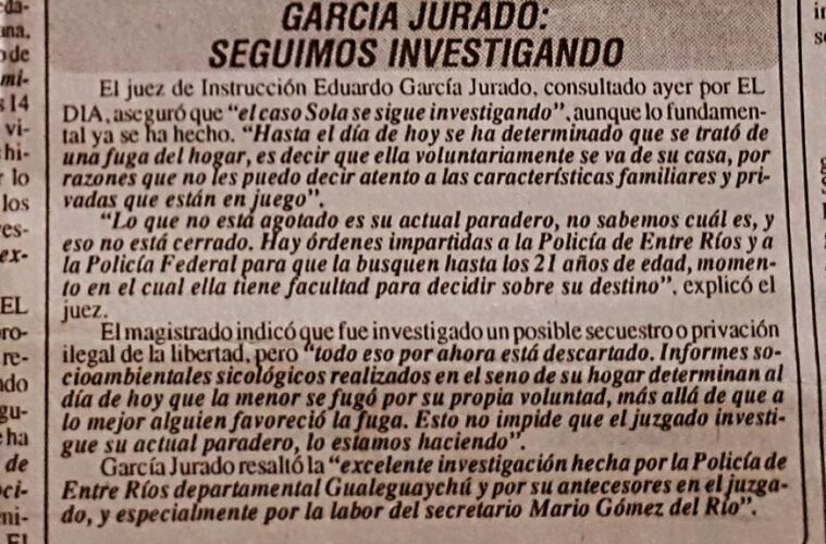 En una nota publicada el 18 de marzo de 1992 con motivo de cumplirse el segundo aniversario de la desaparición de Susana, el exjuez Eduardo García Jurado hizo lo que más le gusta en el mundo mundial: dar declaraciones periodísticas.